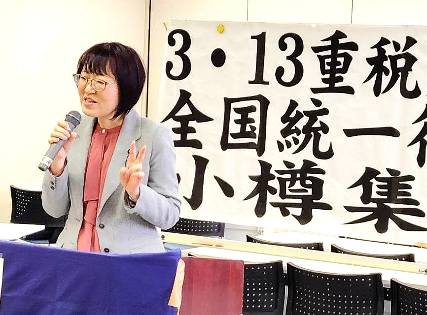 消費税減税!! インボイス撤回!! 2026年3月13日 「平和でこそ商売繁盛」と掲げる小樽民主商工会を中心に、毎年3月13日に行われる「重税反対集会」。集会後は税務署までデモ行進を行い、平和と公平な税制を訴えました。