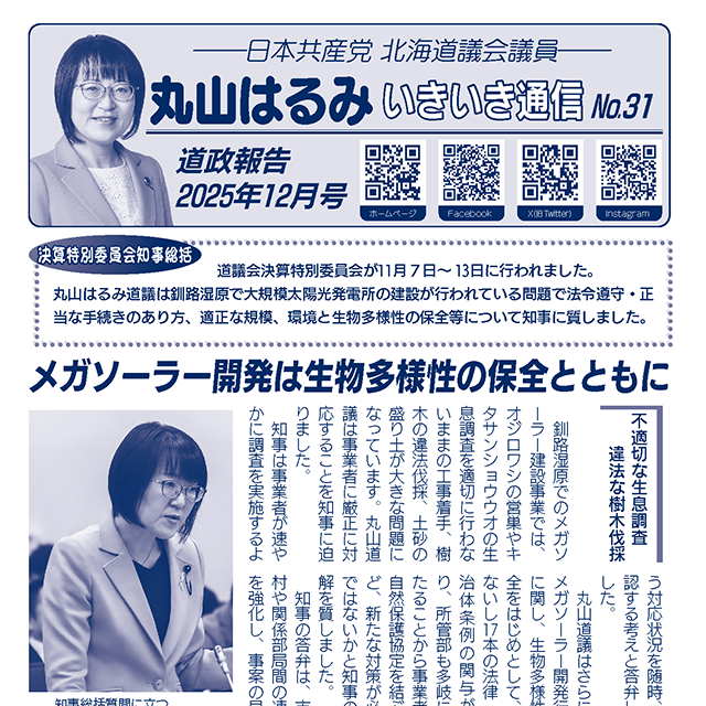 丸山はるみ道議は釧路湿原で大規模太陽光発電所の建設が行われている問題で法令遵守・正当な手続きのあり方、適正な規…